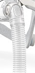 Maska przychodzi w komplecie z miękkim i lekkim łącznikiem, którym przedłużamy zwyczajną rurę. Podnosi to komfort użytkowania maski ale może przyczyniać się do kondensacji wody, w przypadku niskiej temperatury w pomieszczeniu. Maska mocowana jest do poduszki na zaciski, które są w mojej ocenie najsłabszym elementem całej konstrukcji. Ciężko trafić w odpowiednie miejsce, a samo mocowanie nie budzi zaufania.