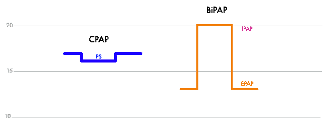 Generalną zasadą jest to, że ciśnienie wydechowe (EPAP) niezbędne jest aby zwalczyć obturacje objawiające się chrapaniem i bezdechami obturacyjnymi. Ciśnienie wdechowe (IPAP) pomaga zwalczać spłycenia oddechu i ograniczenia przepływu. Terapia BiPAP w teorii pozwala więc obniżyć EPAP, ponieważ w terapii CPAP musimy stosować wyższe ciśnienie ze względu potrzebę zwalczania innych od obturacji zaburzeń oddychania.