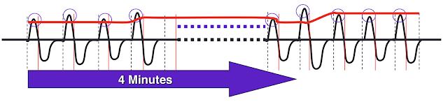 Jak już napisałem we wstępie Philips podszedł do tematu zupełnie inaczej niż ResMed. Przypomnę tylko, że w PaceWave aparat pracuje w oparciu o utrzymanie parametru wentylacji minutowej. Nie ma tam możliwości regulacji Backup Rate (częstotliwość oddechu) tak więc sterujemy tam objętością oddechową zmniejszając lub zwiększając ciśnienie wdechowe. Oczekiwana wentylacja minutowa stanowi 90% uśrednionego wyniku z poprzedzających 3 minut (tzw. średnia krocząca). W Dreamstation analizie podlega szczytowy przepływ oddechu (peak flow). Analizowany jest on „oddech po oddechu” w 4 minutowym okienku czasowym. Aparat pilnuje aby w kolejnym oddechu szczytowy przepływ nie był mniejszy niż 95% wyliczonej w ten sposób wartości średniej. Wartość EPAP kalkulowana jest podobnie jak w ResMed ale dodatkowo algorytm analizuje spłycenia oddechu.