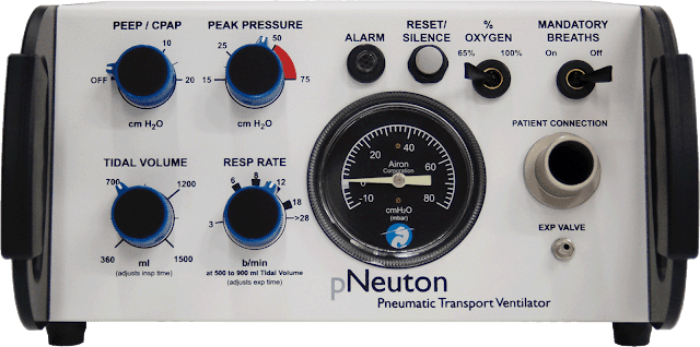 Technicznie rzecz biorąc urządzenie to sprzedawane jest jako respirator transportowy z wbudowanym CPAP (w praktyce to moim zdaniem raczej BiPAP, bo ma regulacje nie tylko PEEP ale i PEAK). Wentylacja może być w nim sterowana na bazie zadanej objętości oddechowej (reguluje ciśnienie aby uzyskać objętość) albo podawanego ciśnienia (reguluje przepływ gazu tak aby uzyskać zadane ciśnienie). Dodatkowo urządzenie to ma wbudowane tzw. taktowanie (respiratory rate) czyli może inicjować kolejne oddechy za pacjenta, w zadanym przez lekarza/ratownika tempie. Możliwy jest przepływ aż do 140l/min. Urządzenie służy zarówno do wentylacji inwazyjnej jak i nieinwazyjnej i można go użyć na dorosłych i dzieciach od 23 kg wagi. Czyli wygląda na to, że mamy do czynienia z pełnoprawnym i w pełni funkcjonalnym respiratorem, który nie potrzebuje prądu. To jest na prawdę imponujące!
