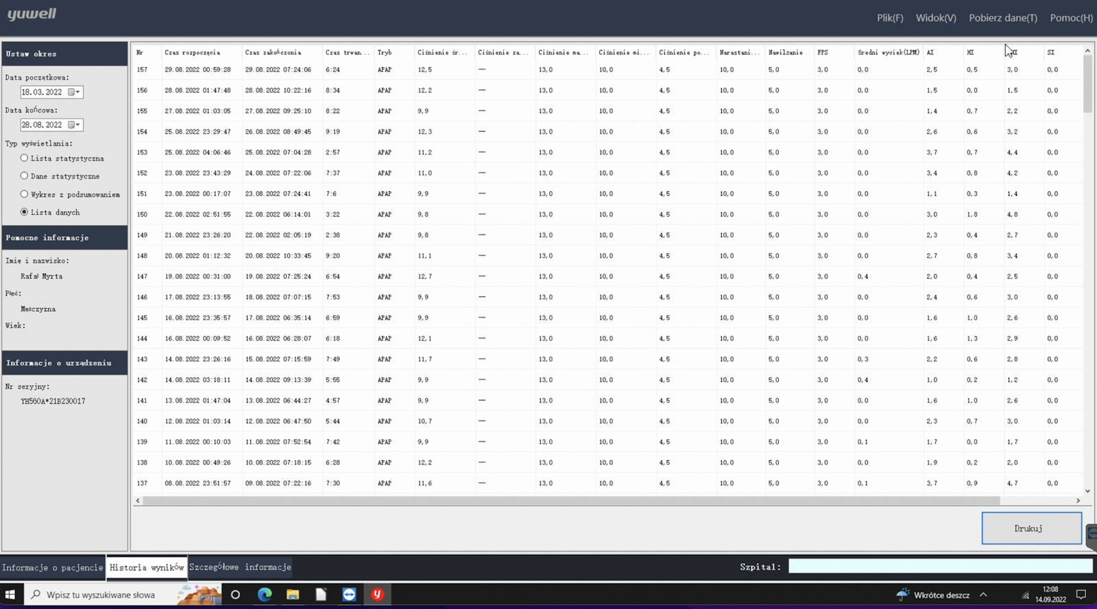 - potwierdziło się moje przypuszczenie, że aparat Yuwell nie rozróżnia bezdechów centralnych i obturacyjnych (stosować go należy tylko przy bezdechu obturacyjnym)